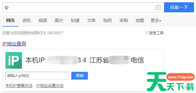 第一种方法:直接百度搜索输入“IP”然后就能看到本机IP了。