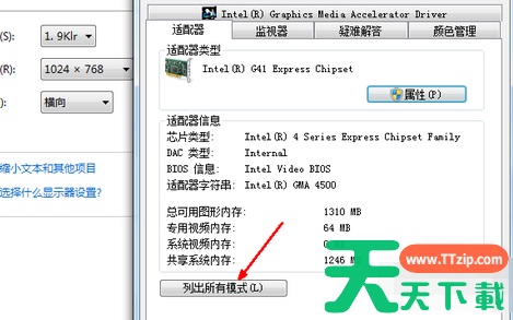 4、进入高级选项页面,点击【适配器】一栏,点击【列出所有模式】。