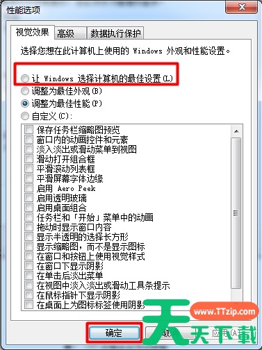 二、在性能和选项启动Aero特效: