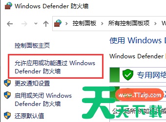 2、在Windows防火墙左侧,点击“允许程序或功能通过Windows防火墙”;