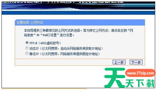 点击下一步,进入上网方式设置,我们可以看到有三种上网方式的选择,