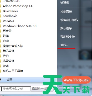 1、首先在开始菜单中找到“附件”下的“运行”,点击打开,如图所示: