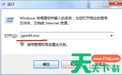2、在“运行”中,输入“gpedit.msc",点击”确定“按钮,打开组策略编辑器,