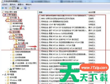 3、在组策略编辑器中,依次打开”计算机配置“—”Windows设置“—”安全设置“—”本地策略“—”安全选项“,