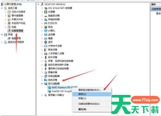 3、进入系统后右击计算机—管理—设备管理器,在里面找到显示适配器,右击鼠标,禁用