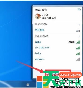 1、首先,鼠标点击桌面右下角的网络图标,然后点“网络与共享中心”