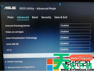 4、找到advanced中的internal pointing device,通过改变后面的enable和disenable来控制触控板的开关