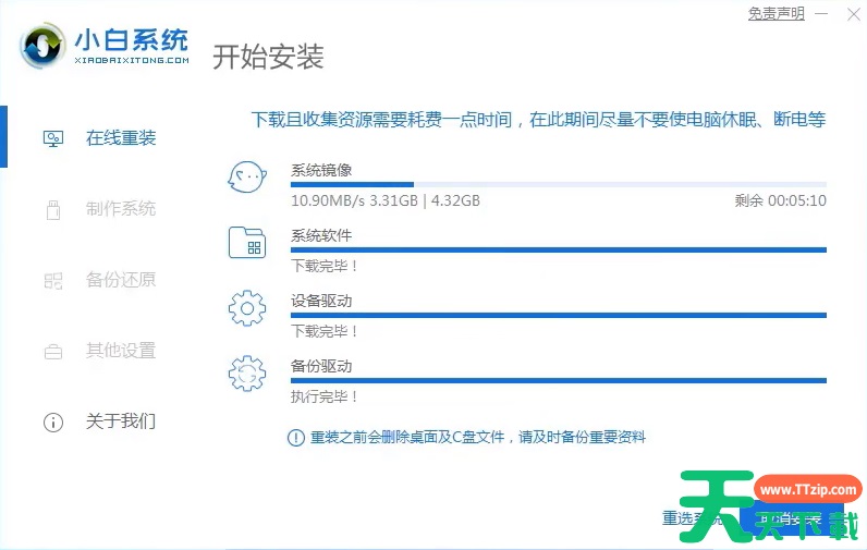 5、接着进入下载系统的环境,下面的操作都是自动运行的,只需要保证电脑不断电、休眠等情况即可。