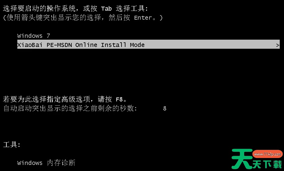 6、下载完成后,电脑重启,选择下面的小白PE进入。