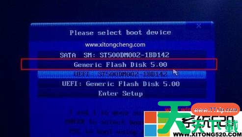 2、在需要安装win7系统的电脑上插入微pe工具箱,重启过程中不停按F12或F11或Esc等启动快捷键调出启动菜单,选择识别到的U盘选项,一般是带有USB的选项,或者是U盘的品牌名称,比如Toshiba、Sandisk或者Generic Flash Disk。如果同时出现两个U盘项,选择不带uefi的项,表示在legacy模式下安装,选择之后按回车键;