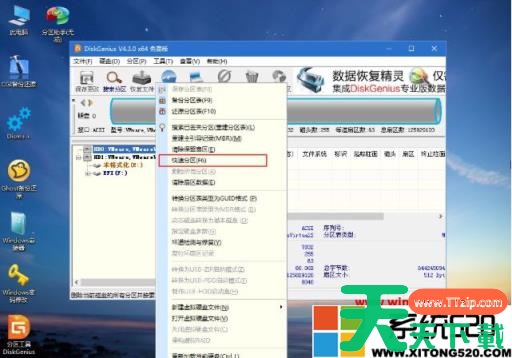 3、进入到pe系统,全新的硬盘需要先分区,双击桌面上的【分区工具DiskGenius】,右键HD0整个硬盘,选择【快速分区】;