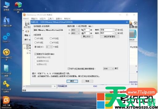 4、默认是MBR分区表类型,设置分区数目、分区大小,卷标为【系统】的表示系统盘(C盘),建议60G以上,如果是固态硬盘,勾选【对齐分区到此扇区数的整数倍】,默认2048即可4k对齐,选择4096也可以,最后点击确定;