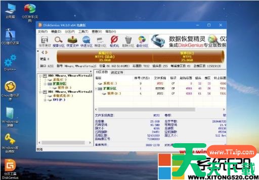 5、执行硬盘重新分区过程,等待一会儿即可,分区之后,如图所示,如果盘符错乱,右键选择更改驱动器路径,自行修改;
