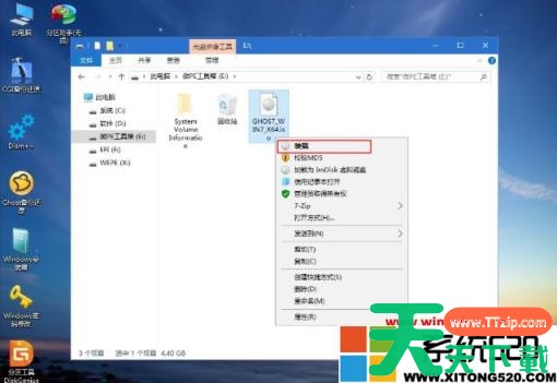 6、完成分区之后,打开此电脑—微pe工具箱,右键点击win7系统iso镜像,选择【装载】,如果没有装载选项,则右键—打开方式—资源管理器打开;