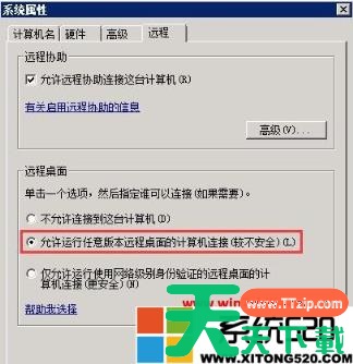 3、选择“允许运行任意版本远程桌面的计算机连接”这个选项,然后保存确定!