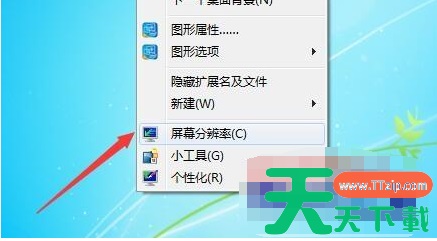 1.鼠标右键展开桌面菜单,并选择【屏幕分辨率】菜单项进入。