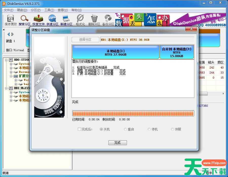 使用本软件可以将硬盘上的空闲区域分配给现有分区,调整过程不会影响现有数据。本功能既可以把空闲空间合并到相邻的分区,也可以合并到其他不相邻的分区中。