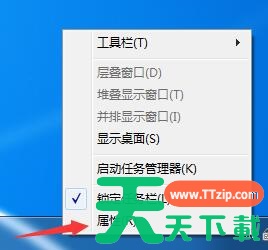 1、右键任务栏,点击“属性”。