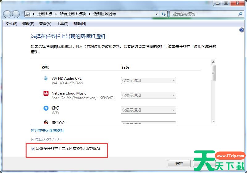 3、取消勾选“始终在任务栏上显示所有图标和通知”。