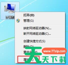 1、在桌面“计算机”图标上右键点击,选择“属性”。