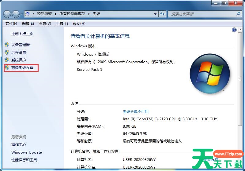 2、然后,在弹出的属性对话框中选择“高级系统设置”。
