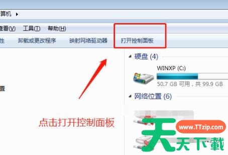 2、随后点击上方任务栏中的“控制面板”。