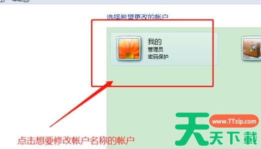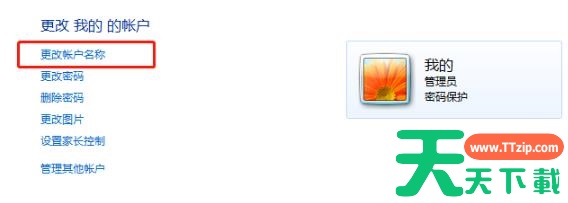 6、选择任务栏第一个“更改账户名称”。