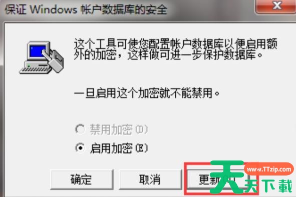 2、进入“保护windows账户数据库的安全”后点击“更新”。