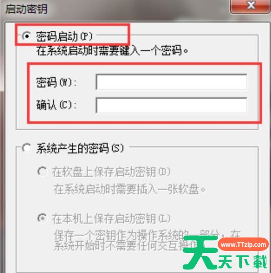 3、随后在弹出的“启动密钥”窗口内输入密码并进行确认。
