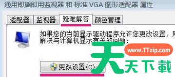4、跳出通用即插即用监视器和标准VGA图形适配器属性——选择疑难解答——点击更改设置。