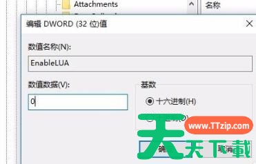 5、此时会出现编辑窗口,将“数值数据”中的1改成0点击“确定”即可。