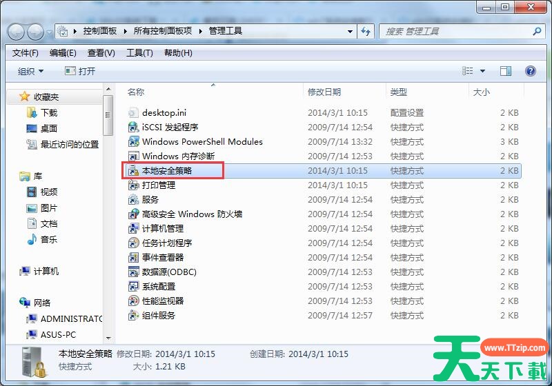 3、在管理工具中选择本地安全策略。