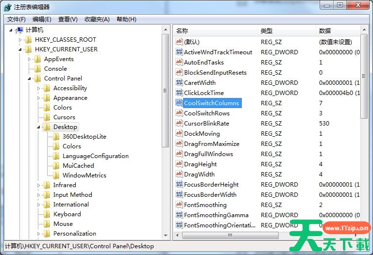 3、在窗口右侧找到“CoolSwitchColumns”项并双击打开;