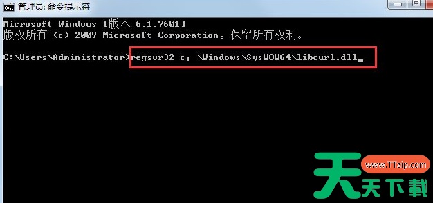 64位Win7操作系统将文件直接复制文件到C:WindowsSysWOW64,开始-程序-附件-命令提示符,右键点击,管理员身份运行,键入regsvr32 c:WindowsSysWOW64libcurl.dll,回车即可。