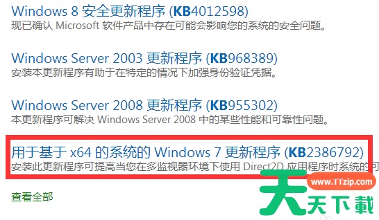 2、然后找到【基于x64系统的win7更新系统】。这个就是缺失的那个文件了。X64就是64位,一般电脑现在都是64位的,当然如果你的电脑是32位的可以向后找一下找到基于X32系统的win7更新系统进行下载。