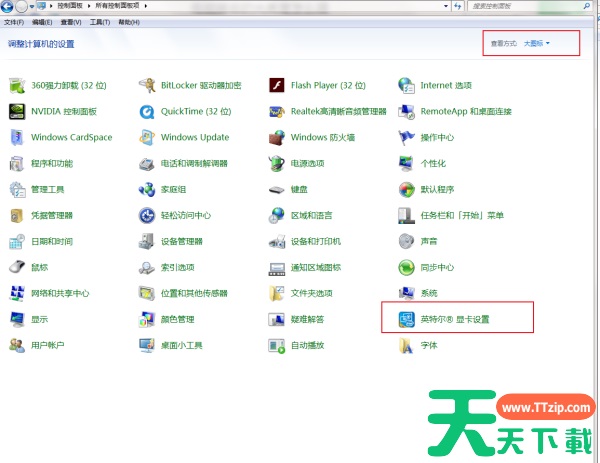 2、把查看方式改为大图标或小图标,找到英特尔显卡设置并打开