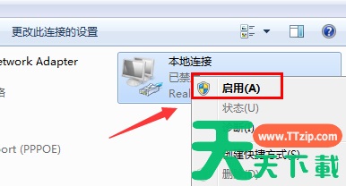 我们要做到在Win7畅快使用网络,就要懂得怎么恢复被禁用的网络。这个并不难,特别是看了天天下载Ttzip的教程后,深入理解其中的含义。以后再遇到,您就能自如的处理。