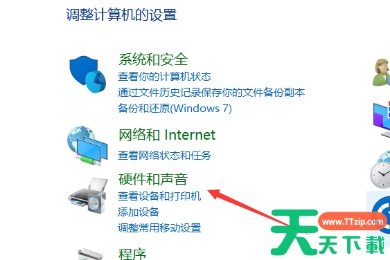 3、打开控制面板,选择硬件和声音,进入管理音频设备。