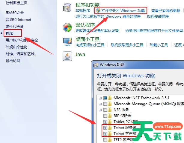 2、【打开或关闭windows服务】——勾选【Telnet服务器】与【Telnet客户端】——点击【确定】,等待一会安装完成即可,如下图: