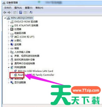 3、现在在设备管理器下面找到“网络适配器”,在下面的网卡驱动中发现有黄色感叹号和黄色问号。