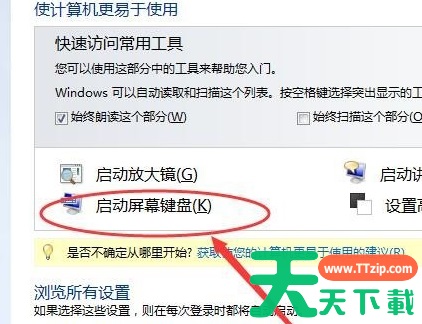 5、然后进入到轻松访问中心页面,就可以看到有一个启动屏幕键盘