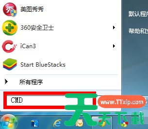 1、点击开始菜单,在搜索框中输入cmd