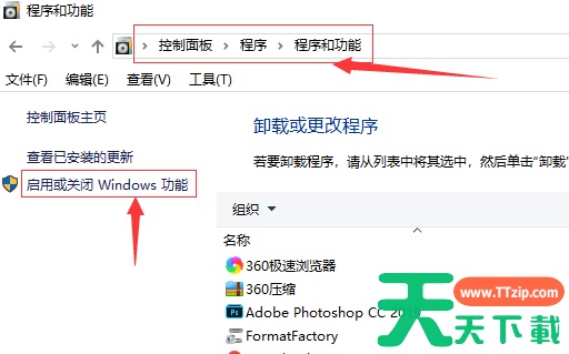 2、在控制面板界面中依次点击“程序-程序和功能”,打开之后点击窗口左侧的“打开或关闭windows功能”项;