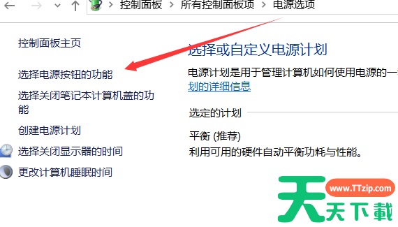 (2)、弹出的“电源选项”界面,点击“选择电源按钮的功能”。