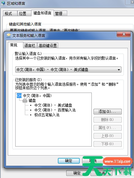 5、点击更改键盘后,就打开如下图所示的文本服务和输入语言设置对话框