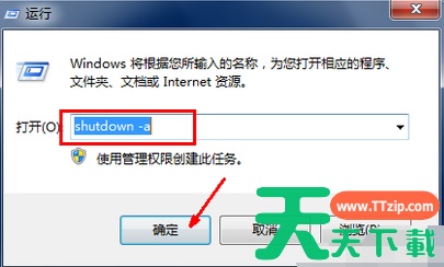3、如果你中途后悔了,或者快到关机的时间了,但是你还有重要的工作没有做完,就再次打开运行,在运行中输入shutdown -a这样一个命令,然后点击确定。
