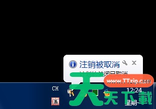 4、此时还是会出现一个黑色的命令框,然后会在托盘处显示一个信息,即计划的任务被取消。这样说明,到时候就不会再自动关机了。如果在临关机时还会跳出一个提示,即几十秒后关机,需要再次输入一下取消,因为取消一次可能不管用,不知道这是bug还是什么。
