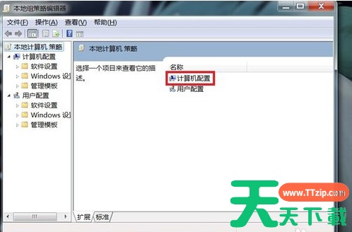 3、弹出“本地组策略编辑器”页面,在该页面的右边双击“计算机配置”。