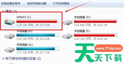 1、可以看到C盘空间已经不足了。
