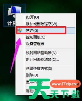 1、右键点击“计算机”,选择“管理”。